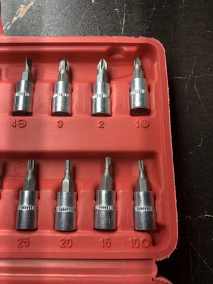 Materials】: This socket set is made from high quality chrome-vanadium steel, high hardness and long life. 【COMFORTABLE DESIGN】: Neat and well polished finish, the handles are designed to provide a comfortable grip feeling. 【User-friendly design】: The sockets and extensions remain locked on the drive. Designed with an easy to reach and quick release steel ball 【Easy to store】: Come in a good container and they lock well, making it easy to carry and store.