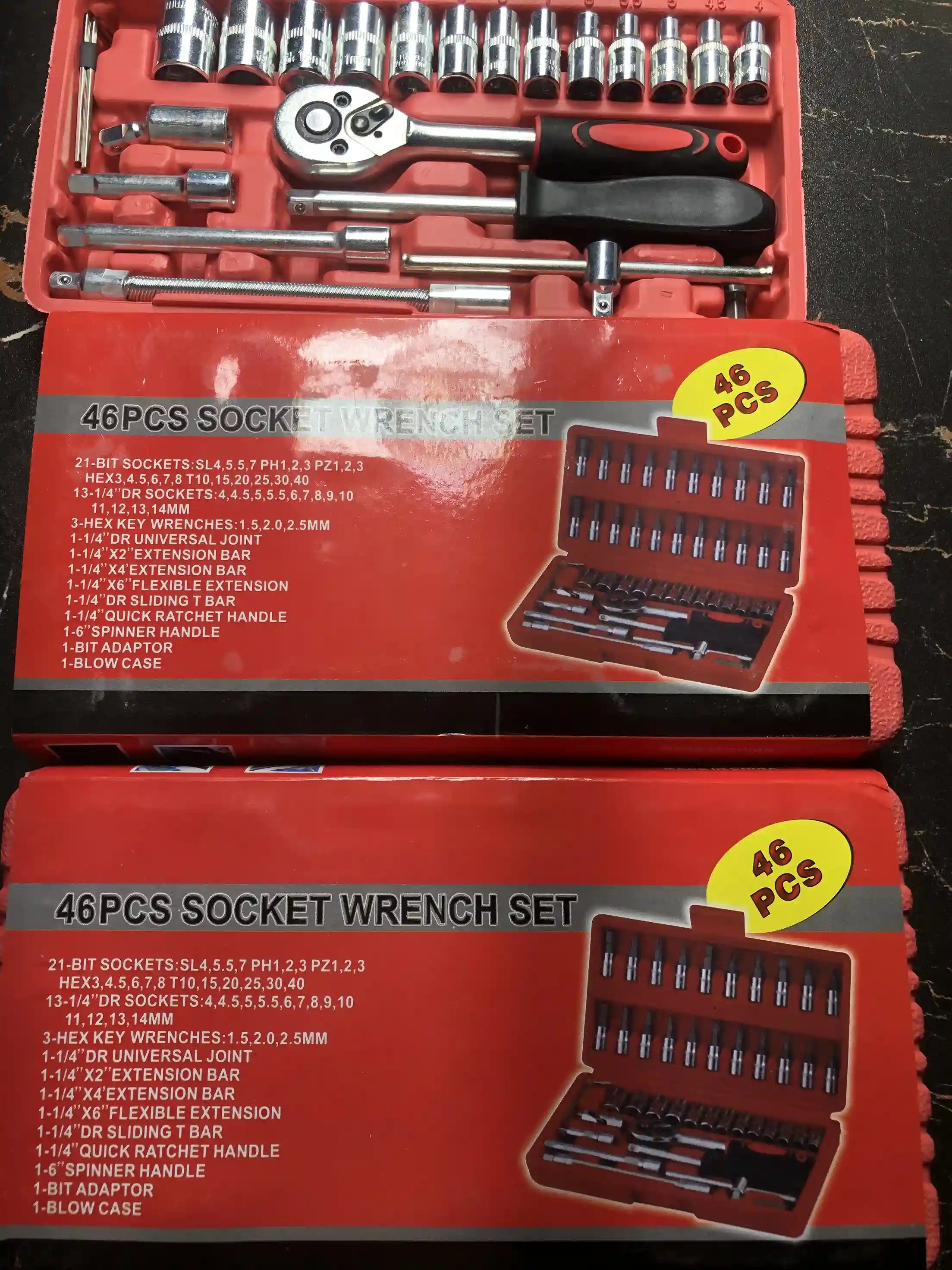 Product details of 46 in 1 Pcs Combination Wrench Set/Socket for Car & Bike Repairing Hand Tool Long Handle Kit 46pcs Combo Tools Repair 1/4' Ratchet Torque Box for Spanner Force Kit, Tools, Set